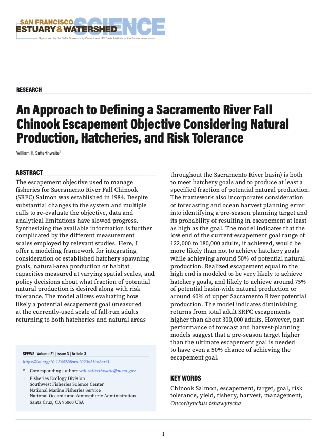 An Approach to Defining a Sacramento River Fall Chinook Escapement Objective Considering Natural Production, Hatcheries, and Risk Tolerance