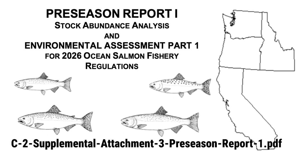 Download important reports from the meeting’s Briefing Book. Agenda C2: Salmon Management, Preseason Report on Ocean Stock Abundance, click here for report to download