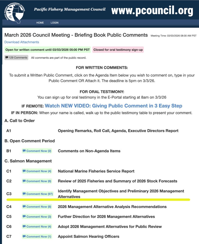 Pacific Fisheries Management Council March 4-9 Meeting in Sacramento!