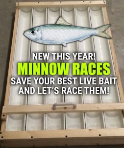 $20 Minnow Races! Save your minnows and bring your fastest bait to the weigh ins! NorCal Guide Kyle Wise of Headhunter Sportfishing has made us a minnow raceway and we’re going to hold races each day. One hearty minnow per angler that entered the Derby.