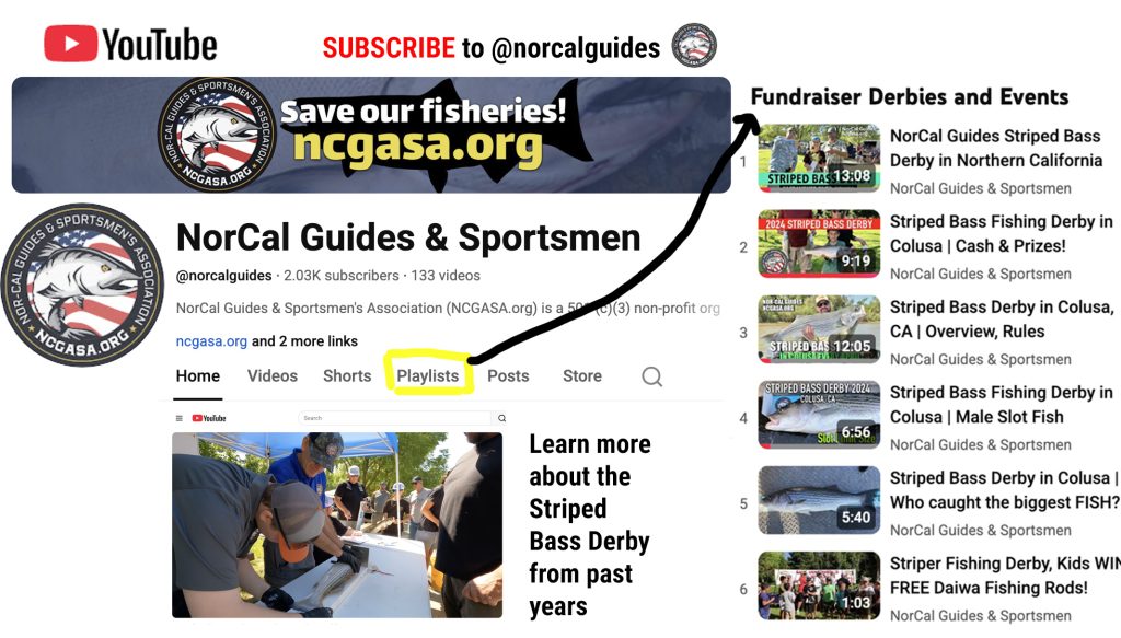 SUBSCRIBE to our NorCalGuides Youtube Channel to view previous year’s Striped Bass Derbies