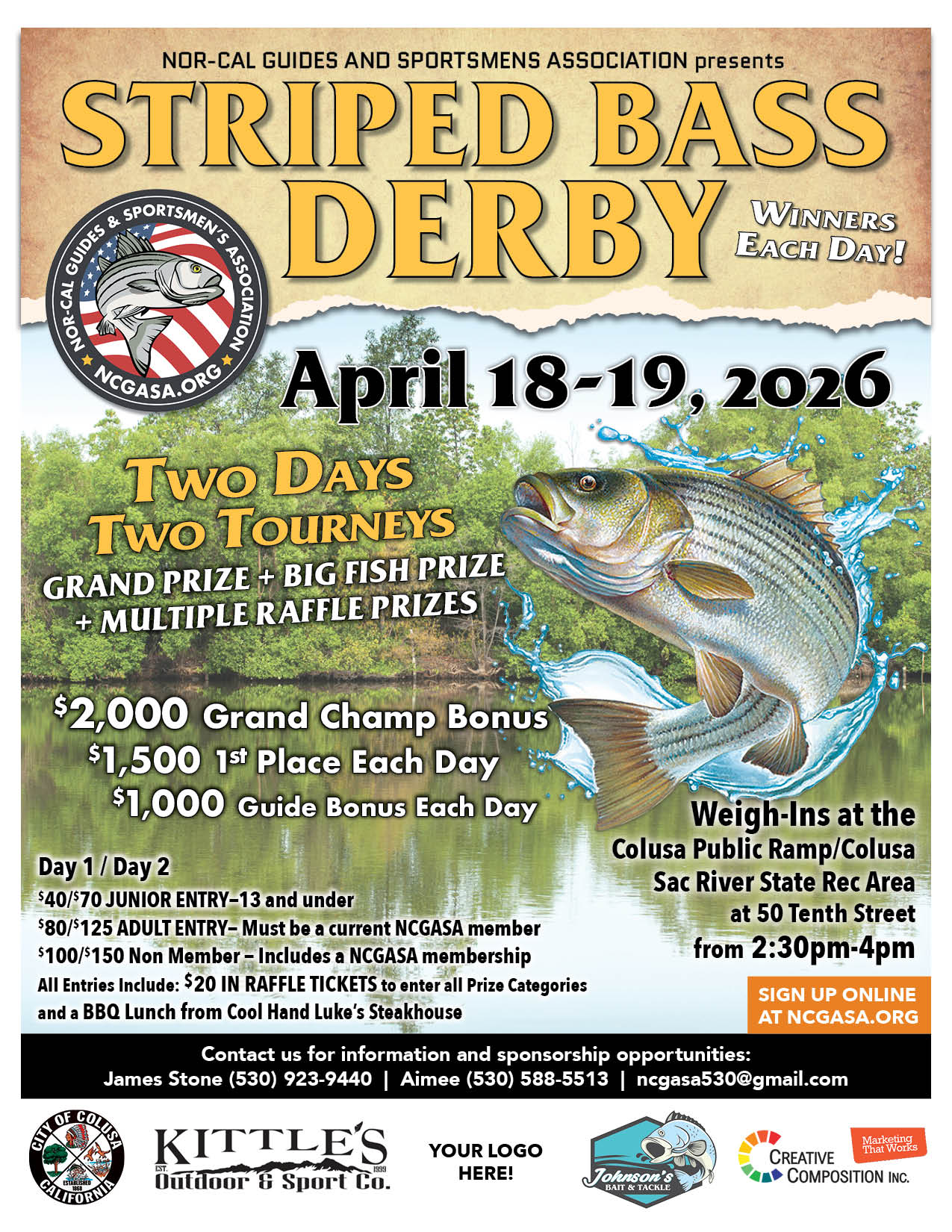 sort Nor-Cal Guides & Sportsmen's Association » mail ncgasa530@gmail.com » credit_card All Major Credit Cards accepted     Member Login